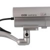 Atrapa IR9000 z diodami IRProfesjonalna imitacja kamery z imitacją diody IR oraz diodą świecącą na czerwono. Wykonana z wysoką jakością użytych materiałów i dbałością o szczegóły. Całość wygląda bardzo realistycznie – może odstraszyć nie jednego złodzieja. Nawet doświadczony instalator CCTV nie jest wstanie odróżnic czy ma do czynienia z profesjonalna kamerą przemysłową czy atrapą. Czerwona dioda LED miga w odstępach 5 sekund.DO ZESTAWU Z ATRAPĄ DOŁĄCZONA JEST WYSOKIEJ JAKOŚCI NAKLEJKA 11cm x 11cmMigająca czerwona dioda LEDDioda elektroluminescencyjna, dioda świecąca, LED (ang. light-emitting diode) dioda zaliczana do półprzewodnikowych przyrządów optoelektronicznych, emitujących promieniowanie w zakresie światła widzialnego, podczerwieni i ultrafioletu. W naszej atrapie zastosowana w celu jeszcze wiekszej skuteczności działania samej atrapy. Migajacy element w postaci diody LED zwraca uwagę rzucając się w “oko”. Główna istota takiego rozwiazania jest w pełni skuteczna w nocy bądź ciemnych pomieszczeniach.Materiał obudowy: ABSABS (poli(akrylonitryl-co-butadien-co-styren)) tworzywa sztuczne otrzymywane w procesie polimeryzacji butadienu oraz kopolimeryzacji akrylonitrylu ze styrenem wraz z jednoczesnym szczepieniem powstałego kopolimeru na polibutadienie. Tworzywo amorficzne. Gęstość 1,05 g/cm3. Duża udarność, twardość oraz odporność na zarysowania. Właśnie takie tworzywo zastosowano w produkcji naszej atrapy, gwarancją tego jest wielka odporność na zarysowania oraz możliwość stosowania na zewnątrz budynków, gdzie atrapa jest narażona na warunki atmosferyczne.Imitacja diod IR (podczerwień)Podczerwień (promieniowanie podczerwone) (ang. infrared, IR) promieniowanie elektromagnetyczne o długości fal pomiędzy światłem widzialnym a falami radiowymi. Oznacza to zakres od 780 nm do 1 mm. Podczerwień stosowana jest w noktowizji. Światło diod podczerwonych stosowane jest w nocy i ciemnych pomieszczeniach, dzięki niemu kamery mogą rejestrować obraz w trudnych warunkach oświetleniowych. W naszej atrapie są to identyczne imitacje prawdziwych diod IR.Specyfikacja- W zestawie akcesoria do montażu (kołki i wkręty)- Źródło zasilania: 2 x AAA (brak w zestawie)- Materiał: wysokiej jakości ABS- Wymiary bez statywu: 13,5cm x 6cm- Kolor: srebrny- Waga: 0,27kg- Gwarancja: 24 miesiące- Gratis naklejka: UWAGA – obiekt monitorowanyZestaw zawiera- Atrapa kamery IR9000 S IR LED- Gratis naklejka: UWAGA – obiekt monitorowany- Akcesoria montażowe- Oryginalne opakowanieCechy- Bardzo wierna kopia oryginalnej kamery do monitoringu- Urządzenie jest wyposażone we wbudowaną pulsującą, czerwoną diodę LED. Stwarza ona wrażenie istnienia na obiekcie systemu monitoringu i odstrasza potencjalnych intruzów- Do zastosowań wewnętrznych i zewnętrznych- Materiał: wysokiej jakości tworzywo odporne na warunki atmosferyczne (ABS)- Dołączone śrubki i kołki do montażu kamery na ścianie- Zasilanie: baterie 2xAAA (R-03) (brak w zestawie)- Gratis naklejka: UWAGA – obiekt monitorowany