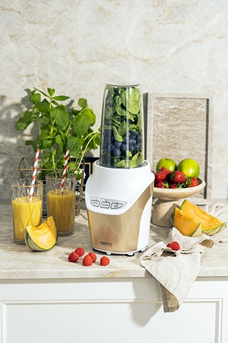 Blender personalny POWERFUL NUTRI CAMRY CR 4071 to idealne rozwiązanie dla tych, którzy zaczynają dzień od zdrowego śniadania w postaci koktajlu owocowego lub warzywnego, smoothie lub po prostu dla tych, którzy cenią sobie szybkie przygotowanie dań w kuchni. Na jego korzyść dodatkowo przemawiają wysoka jakość wykonania, nowoczesny design i funkcjonalność! Jak również to, że kubek z napojem możesz zabrać ze sobą do pracy lub na trening albo możesz przechowywać go bezpiecznie w lodówce. Po prostu przygotuj ulubiony napój i ciesz się jego smakiem!