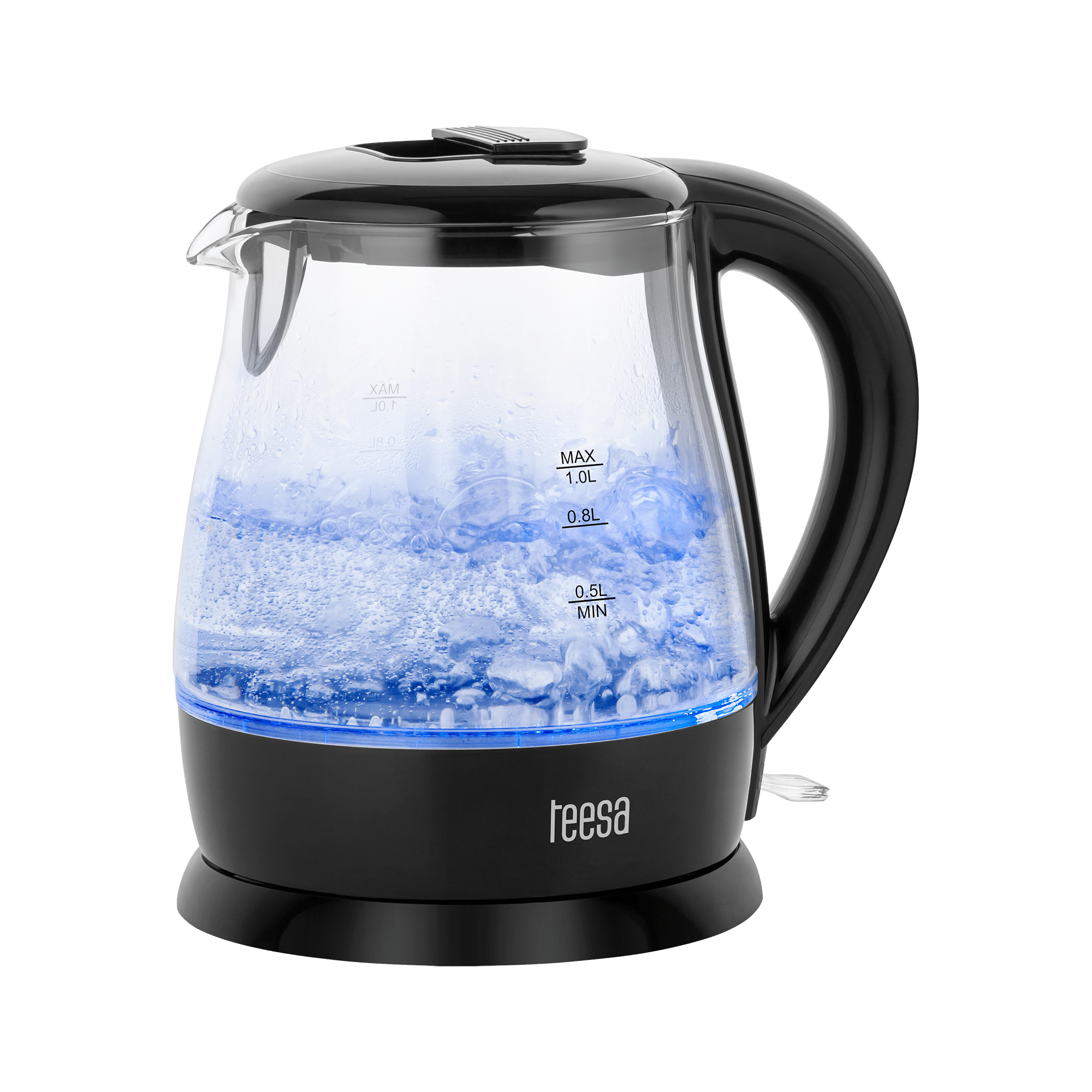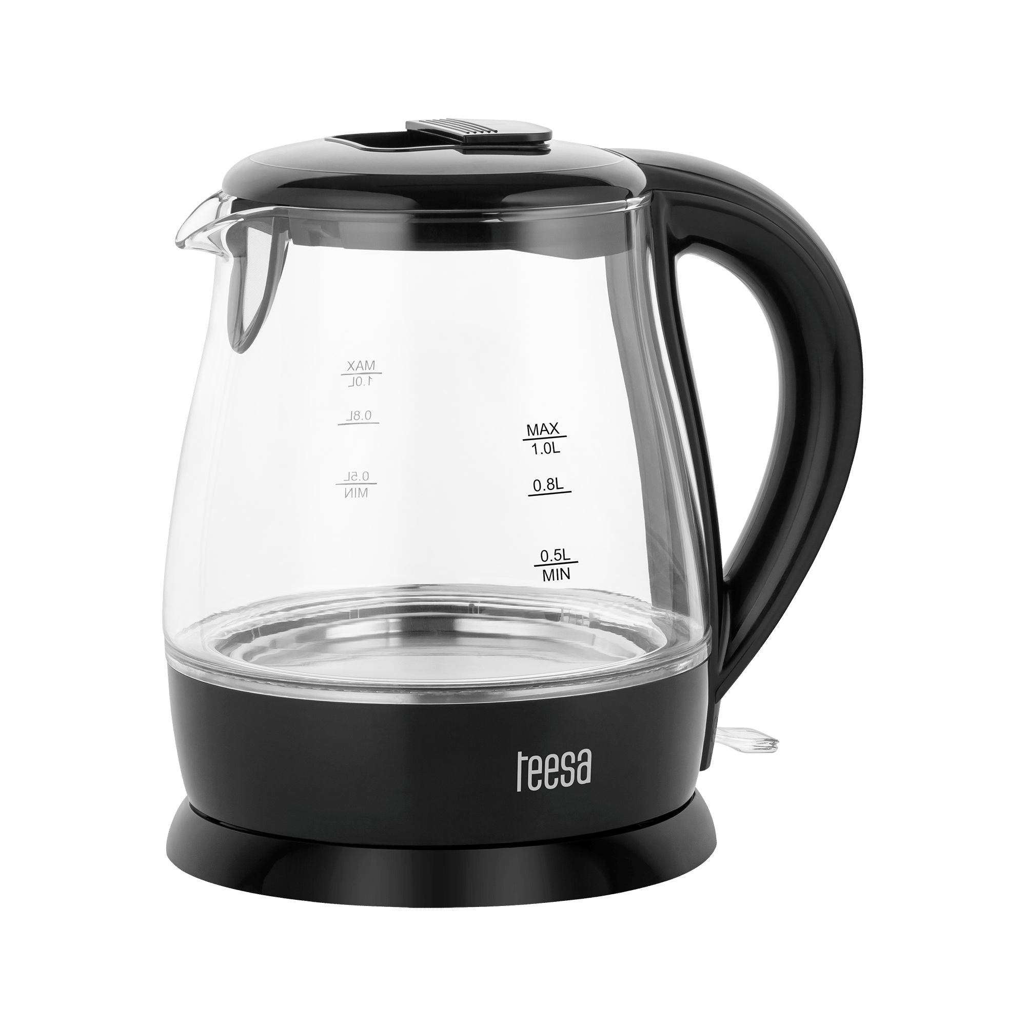 Bezprzewodowy czajnik elektryczny TSA1030BJeśli w zasięgu Twojego zainteresowania jest czajnik turystyczny na działkę czy biwak lub kompaktowy czajnik do małej kuchni, TSA1030 ze względu na swoją funkcjonalność przypadnie Ci do gustu.To, co wyróżnia czajnik elektryczny Teesa, to wykorzystanie trwałego i odpornego na zabrudzenia szkła borokrzemianowego, którego dopełnieniem są elementy wykonane z wysokiej jakości plastiku. Moc maksymalna 2200 W oraz płaska grzałka płytowa pozwalają na szybkie zagotowanie wody.Ten mały czajnik o pojemności 1 l sprawi, że Twoja kuchnia nabierze charakteru. Szklany czajnik bezprzewodowy z podświetleniem w kolorze niebieskim, które przypomina o gotującej się wodzie, nada pomieszczeniu nowoczesności. Tym bardziej, że masz do wyboru model w kolorze czarnym lub białym.Jeśli jednak cenisz bardziej praktyczne rozwiązania atrakcyjność urządzenia zwiększy funkcja automatycznego wyłączania, zabezpieczenie przed włączeniem bez wody oraz wyjmowany filtr antywapienny, który blokuje wydostawanie się osadu powstającego w czasie gotowania.