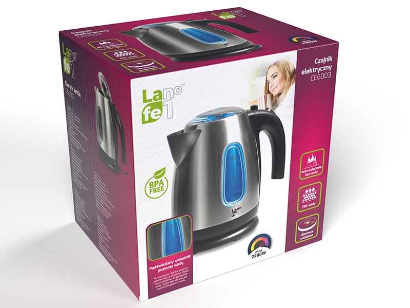Czajnik elektryczny LAFE CEG003 to urządzenie które powinno znaleźć się w każdej nowoczesnej kuchni. Dzięki pojemności 1,7 litra pozwala na przygotowanie jednocześnie ok 6-7 kubków napoju. Nowoczesny kontroler współpracujący z podstawą ze stykiem 360 stopni kontroluje temperaturę gotowania wody oraz zabezpiecza przed przegrzaniem czajnika. Kontroler pełni również funkcję zabezpieczającą która automatycznie wyłączy czajnik jeśli włączymy go bez wody oraz zabezpieczy przed przegrzaniem przy gotowaniu parę razy pod rząd. Podświetlane wnętrze czajnika wskazuje włączenie lub wyłączenie czajnika. Wyposażony jest w wskaźnik poziomu wody, co ułatwia jego użycie. Zainstalowany został również w filtr wody który zatrzymuje drobinki kamienia powstające w procesie gotowania wody. Czajnik jest bardzo łatwy w użyciu, a dzięki mocy 2200W bardzo wydajny.