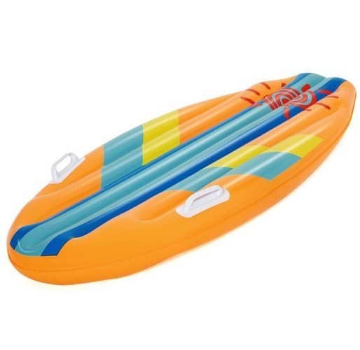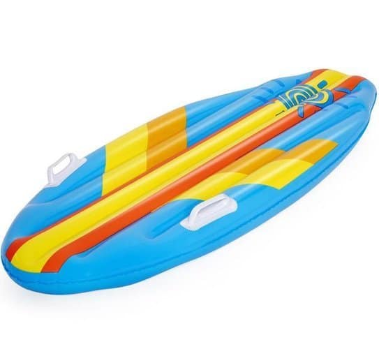 DO BASENU, NAD MORZE I NAD JEZIORO – ta kolorowa deska surfingowa dla dzieci sprawdzi się doskonale zarówno podczas wesołej zabawy w basenie, jak również podczas wyjazdów wakacyjnych, w tym np. nad morzem czy nad jeziorem.DMUCHANA – jest to dmuchana deska surfingowa, więc nie zajmuje wiele miejsca gdy jest nieużywana, ponadto jest lekka i łatwa zarówno w przechowywaniu, jak i w transporcie.ŁATKA W ZESTAWIE – w komplecie znajduje się nie tylko materac deska surfingowa, ale również dodatkowa łatka naprawcza, dzięki której można szybko naprawić deskę, która będzie w jakimś miejscu przepuszczać powietrze, więc posłuży ona dłużej.WYTRZYMAŁE UCHWYTY – ta dmuchana deska surfingowa posiada specjalne uchwyty, dzięki którym dziecku łatwiej jest utrzymać się na jej powierzchni.SPECYFIKACJA – numer katalogowy: Bestway 42046; wytrzymałe uchwyty; łatka w zestawie; 3-10 lat; wym.: 114x46cm; waga w opakowaniu: 0,41kg.