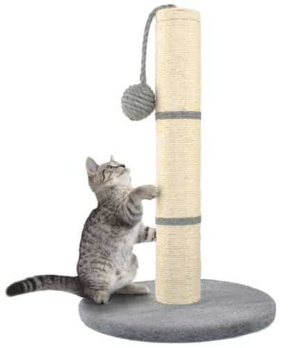 DRAPAK DLA KOTA – SŁUPEKWYKONANIE ? drapak wykonany został z linki sizalowej pochodzenia roślinnego, która produkowana jest z włókna agawy. Jest ekologiczna, dzięki czemu bezpieczna dla naszych pupili. Całość dopełnia podstawa obita miękkim futerkiem.WYTRZYMAŁY ? charakteryzuje jego wysoka wytrzymałość mechaniczna i odporność na ścieranie. Dołączona kuleczka na sznurku zapewnia mnóstwo radości i zabawy. W przypadku zużycia linki sizalowej istnieje możliwość wymiany.STABILNA PODSTAWA ? podstawa o dużej średnicy gwarantuje, że drapak będzie stał stabilnie i nie przewróci się przy zabawie kota.STYLOWY WYGLĄD ? drapak wyróżnia się nowoczesnym i przytulnym wykonaniem, dzięki czemu będzie dobrze wyglądał w każdym pomieszczeniu.SPECYFIKACJA ? wymiary: (wys/szer): 45/29,5cm; waga: 1,35kg; materiał: płyta MDF + dziane sztuczne futro + papierowa rura + lina sizalowa; kolor: szarySPECYFIKACJAwymiary: (wys/szer): 45/29,5cm;waga: 1,35kg;materiał: płyta MDF + dziane sztuczne futro + papierowa rura + lina sizalowakolor: szaryWyjątkowo estetyczny i trwały drapak dla kota to idealne miejsce do ostrzenia pazurków. Każdy właściciel powinien pomyśleć o tym praktycznym prezencie dla swojego podopiecznego ? w przeciwnym razie może liczyć się z przyspieszonym remontem i niespodziewanymi wydatkami na skutek zniszczonych tapet czy mebli. Każdy kiciuś potrzebuje miejsca do ostrzenia swoich pazurków ? drapak dla kota sprawdzi się tutaj idealnie. Zewnętrzną warstwę dużego drapaka dla kota stanowi wzmocniona plecionka z liny sizalowej, która doskonale poradzi sobie z ostrymi pazurkami.Podstawa drapaka dla kota wyłożona jest oczywiście wyjątkowo miękkim futerkiem, który gwarantuje komfortowy wypoczynek z pomrukiwaniem w tle. W przypadku nudy można ponadto zapolować na kulkę zamontowaną na sznurku, która znajduje się na górze drapaka ? można szturchać ją łapkami i atakować zębami.Drapak drapak dla kota idealnie wpasuje się w każdy wystrój mieszkania ? bez względu na styl czy dodatki.