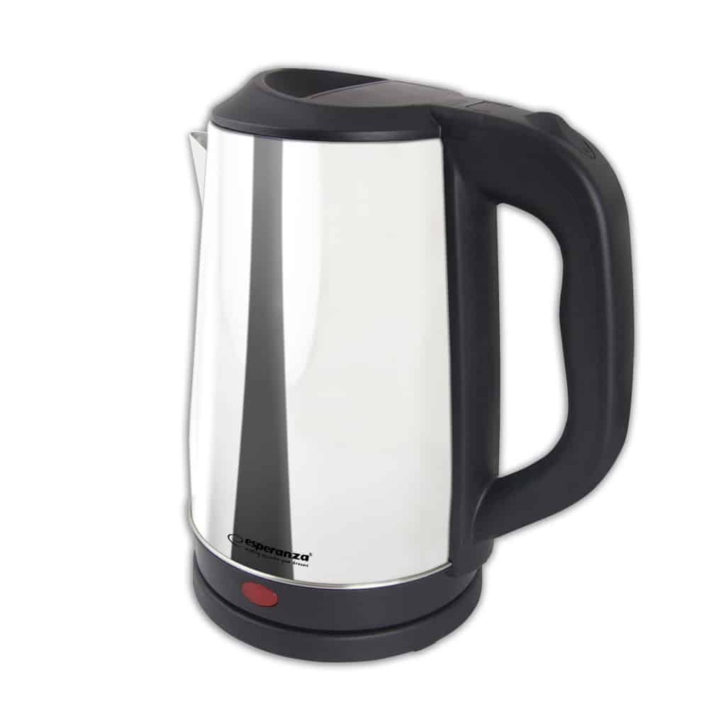 Nowoczesny i elegancki czajnik bezprzewodowy Esperanza TIBER wykonany ze stali nierdzewnej, w dwóch wariantach wykończenia stali: szczotkowanej i polerowanej tak aby pasował do każdej kuchni. Ergonomiczny kształt i funkcjonalność sprawdzą się o każdej porze dnia i w każdym wnętrzu. Wyposażony w wygodny, wbudowany element grzewczy. Łatwe stawianie czajnika na podstawie.ERGONOMICZNY KSZTAŁTPONADCZASOWY I UNIKALNY WZÓRDO KAZDEGO WNĘTRZADLA DUŻEJ RODZINY I DO BIURAMateriały: stal nierdzewna, plastikAutomatyczne wyłączanie po zagotowaniu wodyZabezpieczenie przed gotowaniem bez wodyWbudowana płyta grzewczaDługość przewodu zasilającego: około 75 cmPojemność: 2,5 lMaksymalna moc: 2200 WZasilanie: 220-240 V ~ 50/60 Hz