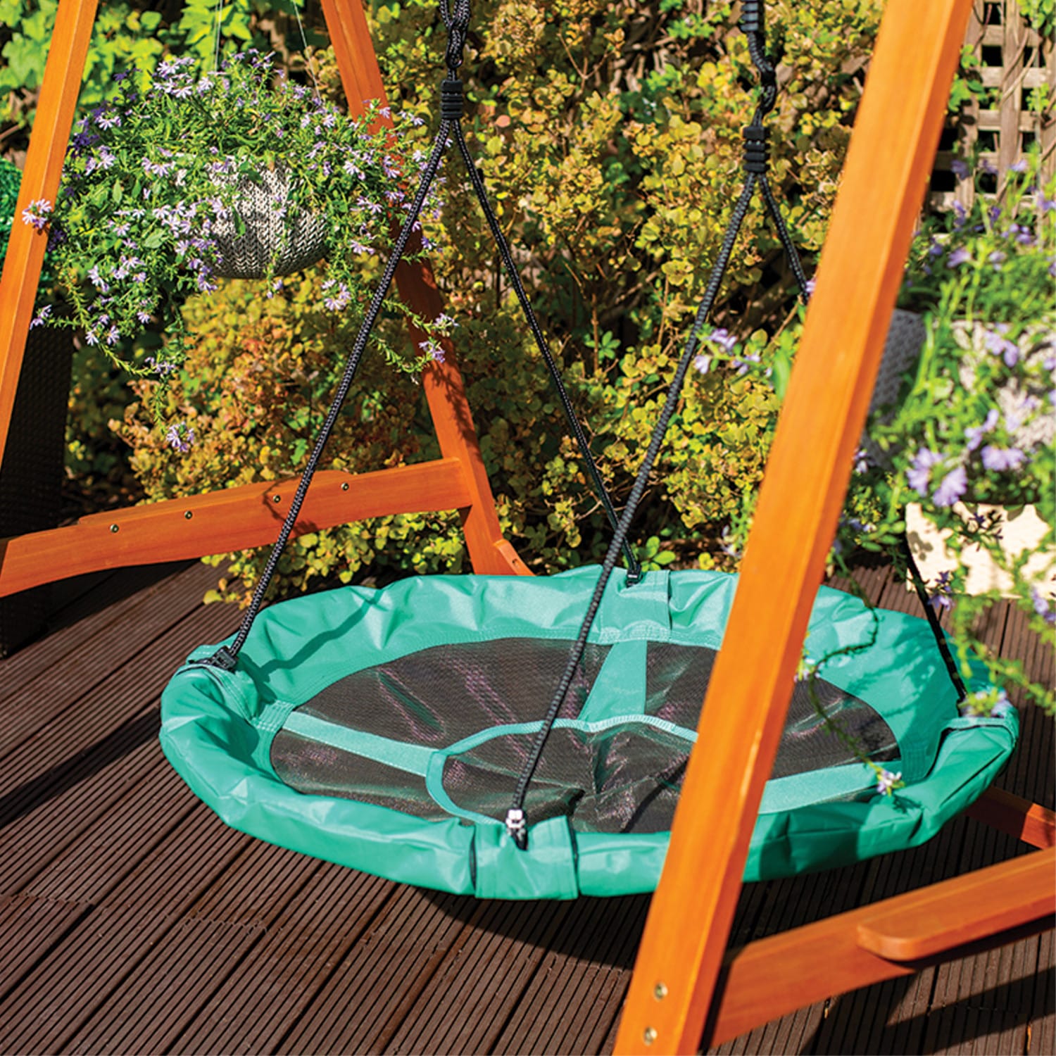 Huśtawka Greenmill GR0128 to unikalny element ogrodowego wyposażenia, który zapewnia nie tylko relaksujący sposób spędzania czasu na świeżym powietrzu, ale także dodaje uroku i charakteru przestrzeni. Wykonana z solidnych materiałów jest stabilna i bezpieczna, zapewniając użytkownikom komfort i pewność podczas używania.Specyfikacja- Producent: Greenmill- Model: GR0128- Materiał siedziska: wysokiej jakości tkanina typu Oxford 300 x 600D wraz z matą z tworzywa PP- Kolor: zielony- Rama siedziska: stal galwanizowana 25 x 0,8 mm (4 elementy)- Średnica: 100 cm- Lina: PE 10 mm z regulacją, maks. 2 x 1,4-1,9 m- Max obciążenie: 150 kg- Przeznaczona dla dzieci powyżej 3 lat.Zestaw zawiera- Huśtawka Bocianie gniazdo – okrągła zielona GR0128Cechy- Szybki i praktyczny sposób montażu ? wystarczy zdjąć bocianie gniazdo z haków- Stalowe pierścienie na końcach mocnych lin gwarantują bezpieczeństwo- Zaokrąglone, gładkie powierzchnie- Pianka zabezpieczająca ramę- Do użytku na zewnątrz i wewnątrz- Max obciążenie 150 kg- Przeznaczona dla dzieci powyżej 3 lat