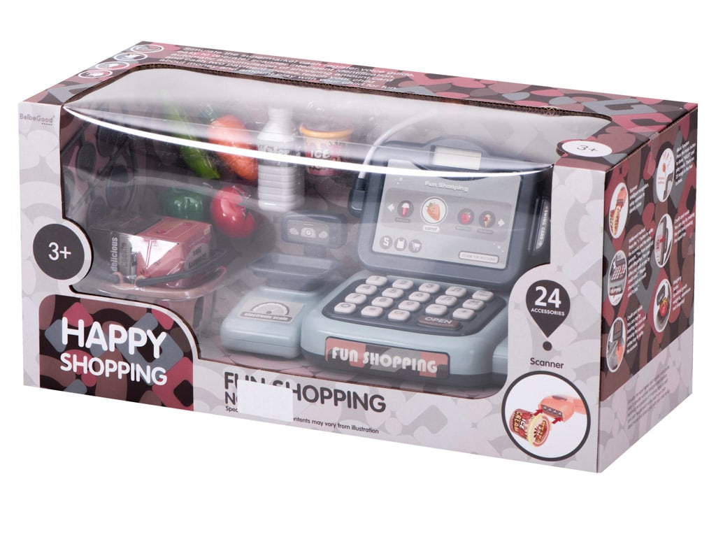 Zabawkowa kasa fiskalna z licznymi akcesoriami. Zabawa w sklep świetnie wpłynie na kreatywność dzieci i zaznajomi je łatwymi równaniami matematycznymi. Dodatkowo zabawka nauczy, jak zachowywać się w sklepie. Tworzywo: plastik. Wym. kasy: 11x8x5cm.