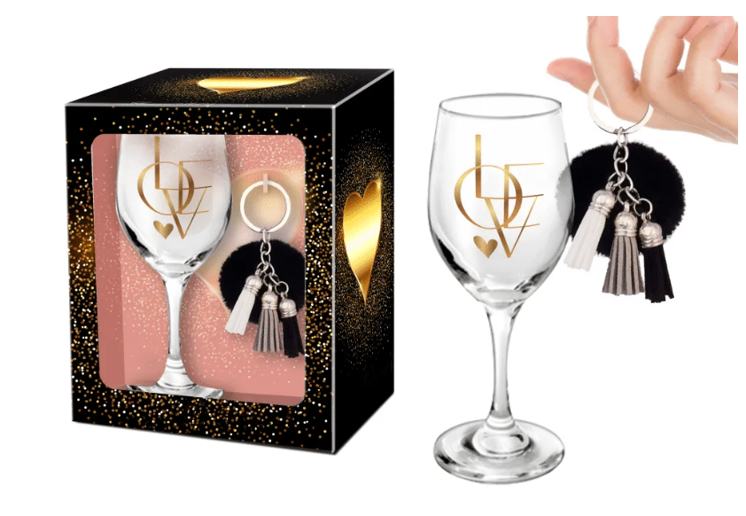 Zestaw kieliszek do wina LOVE + brelok pompon z chwostem