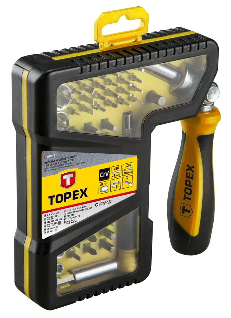 Końcówki wkrętakowe i nasadki z uchwytem, 1/4″, uchwyt wkętakowy magnetyczny z grzechotką, 1 adapter, uchwyt końcówek precyzyjnych, uchwyt do wkrętarki, 9 szt. nasadek, rozmiary: 4, 5, 6, 7, 8, 9, 10, 11, 12 mm, 30 szt. końcówek wkrętakowych, rozmiary; płaskie: 3, 4, 5, 5, 6 mm, krzyżowe PH0, PH1, PH2, PH2, PH3, PZ0, PZ1, PZ2, PZ3, Torx: T10, T15, T20, T20, T25, T25, T27, T30, Hex H3, H4, H5, H6, S0, S1, S2, S3, końcówki precyzyjne rozmiary, płaskie: 1, 1.5, 2, 2,5 3, 3.5, 4 mm, krzyżowe PH000, PH000, PH00, PH0, PH1, PZ0, PZ1, Torx T4, T5, T6, T7, T8 Hex H0,7, H0.9, H1.3, H1.5, H2, stal CrV, opakowaniie plastikowe