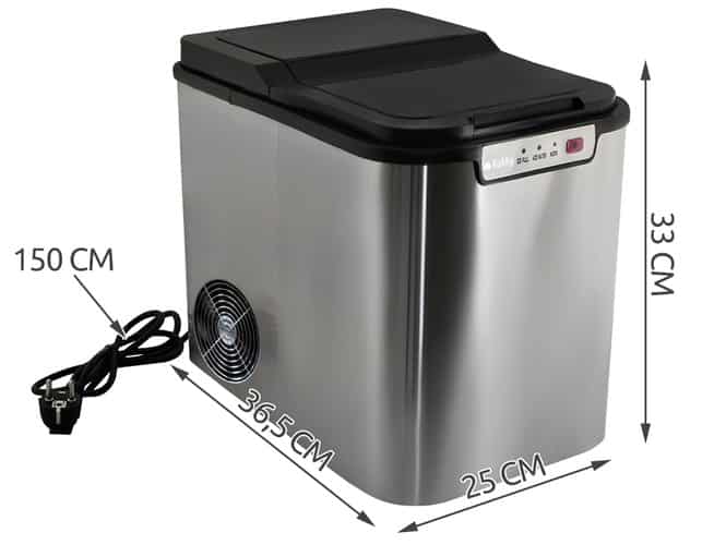 KOSTKARKA DO LODU? DUŻA WYDAJNOŚĆ ? kostkarka wytwarza 12kg kostek na dobę. Pierwsza porcja lodu (9 kostek) jest gotowa już od 9 do 13 minut od uruchomienia maszyny.? BARDZO ŁATWA W OBSŁUDZE – wystarczy wlać wodę, uruchomić urządzenie za pomocą jednego przycisku – ikona płatka, a kostkarka rozpocznie przygotowywanie.? DIODY LED – informują o poszczególnych funkcjach urządzenia, np. niski stan wody, pełen zbiornik kostek.? PRZEZROCZYSTA POKRYWA ? umożliwia sprawdzenie na jakim etapie jest wytwarzanie lodu, bez przerywania pracy urządzenia.? SPECYFIKACJA – moc: 120W; napięcie: 220-240V, 50Hz; prąd: 0,8A; materiał: tworzywo ABS; temperatura pracy: 10-43?; klasa ochrony: I; chłodziwo: R600a; pojemność: 2,2l; wydajność: do 12kg na dobę; ilość kostek lodu na cykl: 9; wymiary (wys/szer/dł): 33x25x36,5cm; długość przewodu: 150cm; waga zestawu: 10,3kg; waga z opakowaniem: 11kg.SPECYFIKACJAmoc: 120Wnapięcie: 220-240V, 50Hzprąd: 0,8Amateriał: tworzywo ABStemperatura pracy: 10-43?klasa ochrony: Ichłodziwo: R600apojemność: 2,2lwydajność: do 12kg na dobęilość kostek lodu na cykl: 9wymiary (wys/szer/dł): 33x25x36,5cmdługość przewodu: 150cmwaga zestawu: 10,3kgwaga z opakowaniem: 11kgW ZESTAWIEkostkarkapojemnik na kostki do loduszufla do loduKostkarka jest urządzeniem o bardzo wysokiej wydajności, umożliwia przygotowanie chłodnych napojów na przyjęciu, w biurze, wszędzie, gdzie najdzie Cię na to ochota. Doskonała do mrożonej kawy! Jest bardzo łatwa w obsłudze. Nie potrzebujesz bezpośredniego podłączenia do bieżącej wody. Wystarczy wlać wodę do zbiornika, uruchomić i kostkarka zaczyna wytwarzać lód.