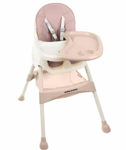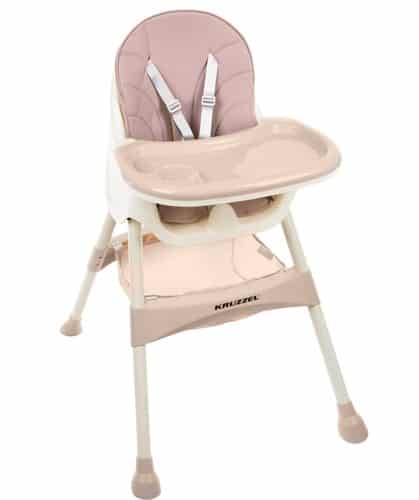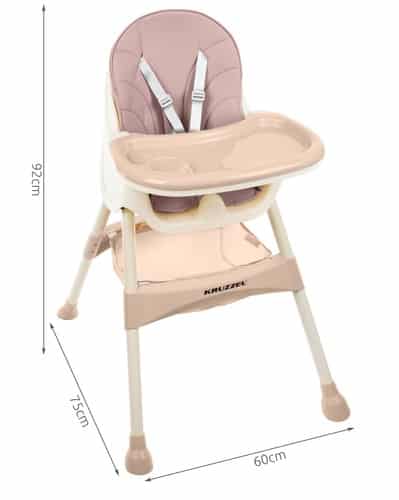 KRZESEŁKO DO KARMIENIA DZIECKA KRUZZEL 3w1DLACZEGO KRZESŁO 3w1? ? jest praktyczne, odpowiednie już gdy dziecko skończy 6 miesiąc życia, a co najważniejsze rośnie razem z dzieckiem. W odpowiedniej konfiguracji krzesełko jest wysokie, a co za tym idzie wygodne dla rodzica do karmienia, po zdemontowaniu nóżek staje się krzesłem dla większych dzieci, a po zdjęciu stolika i pasów staje się samodzielnym krzesełkiem.BEZPIECZEŃSTWO PRZEDE WSZYSTKIM – 5-cio punktowe pasy bezpieczeństwa oraz 4 antypoślizgowe stopki to jest to co zapewni bezpieczeństwo Twojemu maluszkowi. Z naszym krzesłem masz pewność, że posiadasz produkt: bezpieczny, prosty w użytkowaniu, który dodatkowo wpływa pozytywnie na komfort Twój i dziecka.ZDEJMOWANA TACA W ZESTAWIE ZE STOLIKIEM – stolik na krześle KRUZZEL jest regulowany w 3 stopniach, to idealne rozwiązanie dla dzieci, zapewnia im swobodę ruchów oraz brak skrępowania. Dodatkowo blat można całkowicie zdjąć. Na stolik można położyć tacę, do serwowania np. posiłku. Taca posiada wgłębienie na kubek / butelkę, jest łatwa w czyszczeniu oraz odporna na temperatury od -20 aż do 100 ?C. Co to znaczy dla Ciebie i Twojego maluszka? Możesz podać dziecku: lody, ciepłą zupkę, a nawet bardzo ciepłe mleko.SKŁADANE KRZESEŁKO, PODNÓŻEK ORAZ DUŻY KOSZ NA AKCESORIA ? oszczędność miejsca w domu. Krzesełka nie musisz zostawiać zawsze rozłożonego. Po bardzo prostym złożeniu, rozłożysz go w zaledwie kilka sekund bez konieczności używania innych narzędzi. Zatem gdy go nie używasz, złóż go do pozycji stojącej, żeby nie zajmował miejsca. Podnóżek zapewni dziecku wygodę w użytkowaniu. Kosz na akcesoria przyda się mamie, na wszystko co musi mieć “pod ręką”. Można tu przechowywać: zabawki, chusteczki, butelki itp.SPECYFIKACJA ? kolor: pudrowy róż; materiał siedziska: PVC + wypełnienie: gąbka, szelki: POM, stolik/taca: PP, materiałowy kosz: poliester, nóżki: żelazo + PP; wiek: 6m+; max obciążenie do 15 kg; pięciopunktowe pasy bezpieczeństwa: tak z możliwością demontażu; regulowany blat: tak w 3 stopniowym zakresie z możliwością demontażu; nakładana tacka do serwowania: tak z wgłębieniem na kubek / butelkę; tapicerka z eko skóry: tak łatwa do utrzymania w czystości z możliwością demontażu; podnóżek: tak; kosz na akcesoria: tak; montaż: z blokadami “na klik”; antypoślizgowe stopki: tak; 3w1: tak; blat i tacka odporna na temperatury w zakresie: -20 do 100 ?C; wysokość siedziska od ziemi po rozłożeniu: 55cm; wymiary siedzenia: 32 x 22-30 cm; wymiary (wys/szer/gł): 60-92/60/75cm; waga: 4,5 kg; waga w opakowaniu: 6 kg.SPECYFIKACJAkolor: pudrowy róż;materiał siedziska: PVC + wypełnienie: gąbka, szelki: POM, stolik/taca: PP, materiałowy kosz: poliester, nóżki: żelazo + PPwiek: 6m+;max obciążenie do 15kg;pięciopunktowe pasy bezpieczeństwa: tak z możliwością demontażu;regulowany blat: tak w 3 stopniowym zakresie z możliwością demontażu;nakładana tacka do serwowania: tak z wgłębieniem na kubek / butelkę;tapicerka z eko skóry: tak łatwa do utrzymania w czystości z możliwością demontażu;podnóżek: takkosz na akcesoria: tak;montaż: z blokadami “na klik”;antypoślizgowe stopki: tak;3w1: tak;blat i tacka odporna na temperatury w zakresie: -20 do 100 ?C;wysokość siedziska od ziemi po rozłożeniu: 55cmwymiary siedzenia: 32 x 22-30 cm;wymiary (wys/szer/gł): 60-92/60/75cm;waga: 4,5 kg;waga w opakowaniu: 6 kg.Krzesełko 3w1 KRUZZEL to idealne rozwiązanie podczas codziennych posiłków Twojego dziecka. Fotel jest lekki, miękki i prosty w użytkowaniu. Krzesło jest odpowiednie kiedy dziecko skończy 6 miesiąc życia. Posiada zdejmowaną tapicerkę z praktycznej eco skóry, która jest łatwa w czyszczeniu i wygodna w użytkowaniu. Blat posiada 3 poziomy regulacji odległości oraz zdejmowaną tackę. Dodatkowym atutem 4 antypoślizgowe nóżki z odpowiednim rozstawem zapewniając stabilność krzesełka. Dodatkowy wyprofilowany element zabezpieczający miedzy nóżkami, uniemożliwiający dziecku wyślizgnięcie się z krzesełkaDzięki 5-punktowym pasom możesz zapewnić dziecku bezpieczeństwo nie ograniczając mu ruchów. Krzesełko KRUZZEL zostało zaprojektowane z myślą o bezpieczeństwie i wygodzie Twojej i Twojego dziecka! Dopasowuje się do wieku, potrzeb i umiejętności malucha.