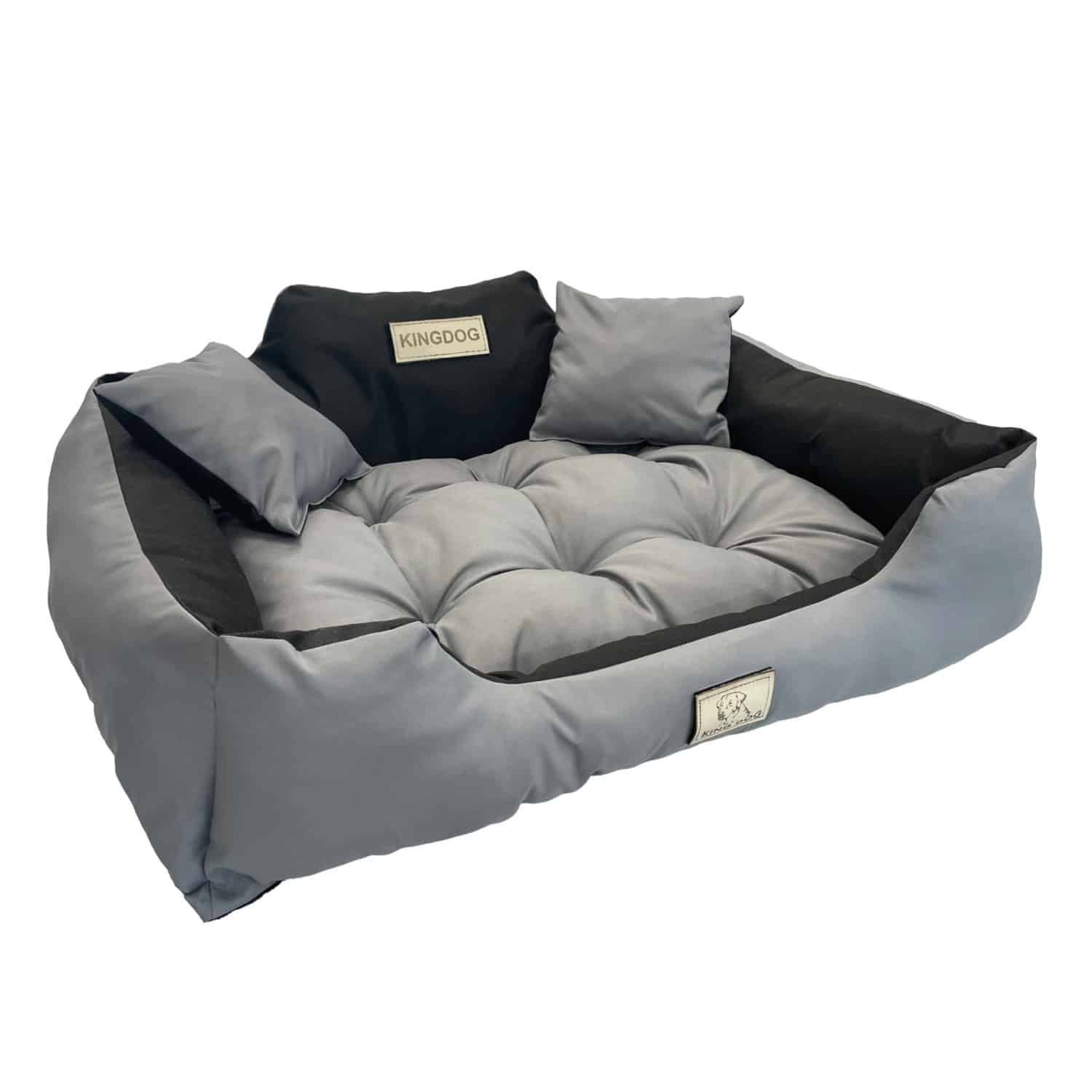 Legowisko KingDog – doskonałe dla Twojego psa lub kota. Tkanina łatwa w czyszczeniu i odporna na zabrudzenia. Strona górna materaca jest wodoodporna. W zestawie dwie poduszki. Pikowane poduszki sprawią, że Twój najlepszy przyjaciel będzie spać jak prawdziwy król. Spód legowiska wykonany jest z materiału łatwego do czyszczenia.Domowe czworonogi uwielbiają mieć swój przytulny kącik, w którym mogą wypoczywać i gdzie poczują się bezpiecznie. Wygodne legowisko będzie dla każdego psa i kota ulubionym miejscem na sen i leniuchowanie.Specyfikacja- Producent: AIO FACTORY- Kod producenta: KIN145/115C-SZ- Materiał: 100% poliester- Gramatura: 240gr/m2 poliester- Wysokiej jakości materiał z mocnymi szwami- Materiał przyjemny w dotyku- Łatwy do czyszczenia, odporny na zabrudzenia- Legowisko można prać w 30 stopniach C – bez wirowania- Wymiary zewnętrzne: 145 x 115 cm- Wymiary wewnętrzne: 130 x 100 cm- Kolor: szaro-czarny- Zdjęcia produktu w ofercie mają charakter poglądowy, przedstawiają model legowiska o wymiarach 100×75 cmZestaw zawiera- Legowisko dla psa kota 145×115 cm KingDog KIN145/115C-SZ szaro-czarne- Poduszki 2 szt. 15 x 15 cmCechy- Legowisko KingDog doskonałe dla Twojego psa lub kota- Tkanina łatwa w czyszczeniu, odporna na zabrudzenia i zadrapania- Strona górna materaca jest wodoodporna- W zestawie dwie poduszki- Spód legowiska wykonany jest z materiału łatwego w czyszczeniu- Pikowana poduszka ma ok. 10-12 centymetrów grubości, co sprawi, że Twój najlepszy przyjaciel będzie spać jak prawdziwy król- Wymiary zewnętrzne: 145 x 115 cm- Wymiary wewnętrzne: 130 x 100 cm- Kolor: szaro-czarny
