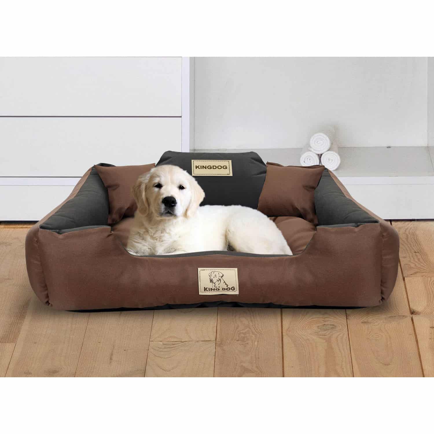 Legowisko zostało uszyte z miękkich w dotyku i wytrzymałych tkanin. Spód wykonany z mocnej flizeliny odpornej na przetarcia. Góra z grubej wodoodpornej tkaniny Codura, która cechuje się dużą wytrzymałością na rozerwanie i przetarcie. W razie nacięcia nie będzie się dalej pruć. Jest 3x bardziej wytrzymała od poliestru i 10x mocniejsza od bawełny. Wypełnienie miękkie silikonowe – takie jak w kołdrach, poduszkach. Produkt antyalergiczny, wykonany tylko z ekologicznych materiałów. Materiał stosowany do legowisk jest odporny na zadrapania i wilgoć. Materiał nie zawiera pierwiastków szkodliwych dla zdrowia, ani metali ciężkich.Specyfikacja- Producent: AIO FACTORY- Oznaczenie producenta: KIN145/115BRA- Wymiary zewnętrzne: 145 x 115 cm- Wymiary wewnętrzne: 130 x 100 cm- Tolerancja wymiarów: 5%- Materiał: Codura nieprzemakalna PVC- Tkanina łatwa w czyszczeniu i odporna na zabrudzenia- Poduszka pikowana- Skład tkaniny: poliester 100%- Gramatura: 190gr/m2- Legowisko można prać w 30 stopni C – bez wirowania- Kolor: brązowo-czarny- Zdjęcia produktu w ofercie mają charakter poglądowy, przedstawiają model legowiska o wymiarach 100×75 cmZestaw zawiera- Legowisko KINGDOG KIN145/115BRA 145 x 115 cm brązowo-czarne- Poduszki 2szt, 15 x 15 cmCechy- Legowisko zostało uszyte z miękkich w dotyku i wytrzymałych tkanin- Spód wykonany z mocnej flizeliny odpornej na przetarcia- Góra z grubej wodoodpornej tkaniny Codura, która cechuje się dużą wytrzymałością na rozerwanie i przetarcie- W razie nacięcia nie będzie się dalej pruć- Jest 3x bardziej wytrzymała od poliestru i 10x mocniejsza od bawełny- Wypełnienie miękkie silikonowe – takie jak w kołdrach, poduszkach- Produkt antyalergiczny, wykonany tylko z ekologicznych materiałów- Materiał stosowany do legowisk jest odporny na zadrapania i wilgoć- Materiał nie zawiera pierwiastków szkodliwych dla zdrowia, ani metali ciężkich