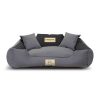 Legowiska zostały uszyte z miękkich w dotyku i wytrzymałych tkanin. Stretch to tkanina która cechuje się dużą odpornością na rozciąganie, uszkodzenia mechaniczne oraz na wielokrotne pranie. Dodatkowo w porównaniu do tkanin z włókien naturalnych jest dużo bardziej odporna na wszelkiego rodzaju zabrudzenia, nie wymaga też prania w wysokich temperaturach. Mimo tak wielu cennych właściwości i wytrzymałości Panama Stretch, to tkanina delikatna, matowa i przyjemna w dotyku. Legowisko jest rozbieralne – za pomocą zamka wyciągamy wypełnienie, ułatwi i przyspieszy to pranie legowiska. Spód antypoślizgowy – zapobiega przesuwaniu się legowiska. Wypełnienie miękkie silikonowe – takie jak w kołdrach, poduszkach. Produkt antyalergiczny, wykonany tylko z ekologicznych materiałów. Materiał stosowany do legowisk jest odporny na zadrapania i wilgoć. Materiał nie zawiera pierwiastków szkodliwych dla zdrowia, ani metali ciężkich.Specyfikacja- Producent: AIO FACTORY- Oznaczenie producenta: KINMIC100/75C-SZ- Kolor: szaro-czarny- Rozmiar: ?L?- Wymiary zewnętrzne: 100 x 75 cm- Wymiary wewnętrzne: 80 x 60 cm- Tolerancja wymiarów: 5%- Materiał: Panama Stretch MM43 ? w kolorze legowiska- Tkanina łatwa w czyszczeniu i odporna na zabrudzenia- Legowisko można prać w 30 stopni C – bez wirowania- Skład tkaniny: poliester 100%- Gramatura: 160 gr/m2Zestaw zawiera- Legowisko dla psa KINGDOG KINMIC100/75C-SZ 100×75 cm szaro-czarne- Poduszki 2 szt. 15 x 15 cmCechy- Legowiska zostały uszyte z miękkich w dotyku i wytrzymałych tkanin- Stretch to tkanina która cechuje się dużą odpornością na rozciąganie, uszkodzenia mechaniczne oraz na wielokrotne pranie- Dodatkowo w porównaniu do tkanin z włókien naturalnych jest dużo bardziej odporna na wszelkiego rodzaju zabrudzenia, nie wymaga też prania w wysokich temperaturach- Mimo tak wielu cennych właściwości i wytrzymałości Panama Stretch, to tkanina delikatna, matowa i przyjemna w dotyku- Legowisko jest rozbieralne – za pomocą zamka wyciągamy wypełnienie, ułatwi i przyspieszy to pranie legowiska- Spód antypoślizgowy – zapobiega przesuwaniu się legowiska- Wypełnienie miękkie silikonowe – takie jak w kołdrach, poduszkach- Produkt antyalergiczny, wykonany tylko z ekologicznych materiałów- Materiał stosowany do legowisk jest odporny na zadrapania i wilgoć- Materiał nie zawiera pierwiastków szkodliwych dla zdrowia, ani metali ciężkich