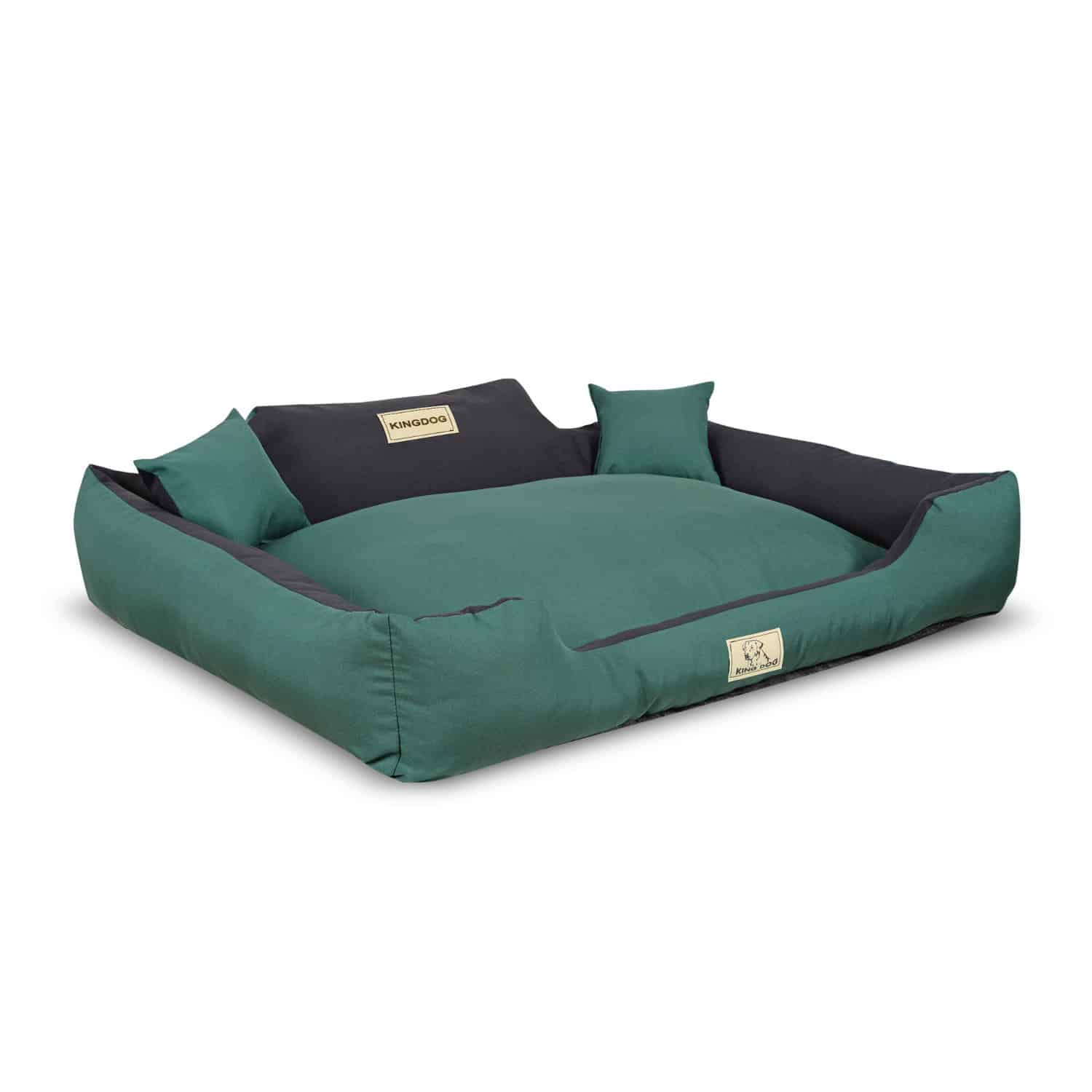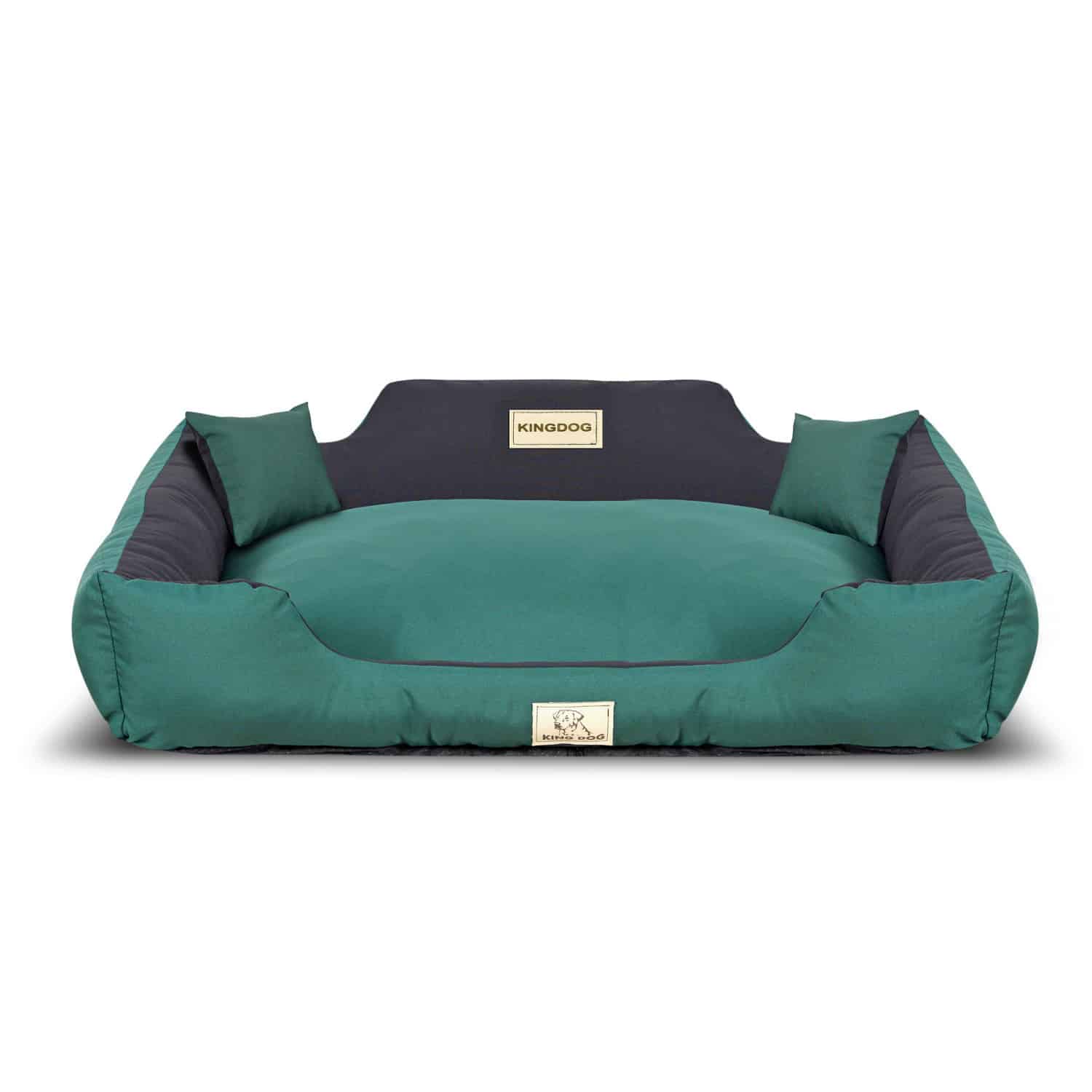 Legowiska zostały uszyte z miękkich w dotyku i wytrzymałych tkanin. Stretch to tkanina która cechuje się dużą odpornością na rozciąganie, uszkodzenia mechaniczne oraz na wielokrotne pranie. Dodatkowo w porównaniu do tkanin z włókien naturalnych jest dużo bardziej odporna na wszelkiego rodzaju zabrudzenia, nie wymaga też prania w wysokich temperaturach. Mimo tak wielu cennych właściwości i wytrzymałości Panama Stretch, to tkanina delikatna, matowa i przyjemna w dotyku. Legowisko jest rozbieralne – za pomocą zamka wyciągamy wypełnienie, ułatwi i przyspieszy to pranie legowiska. Spód antypoślizgowy – zapobiega przesuwaniu się legowiska. Wypełnienie miękkie silikonowe – takie jak w kołdrach, poduszkach. Produkt antyalergiczny, wykonany tylko z ekologicznych materiałów. Materiał stosowany do legowisk jest odporny na zadrapania i wilgoć. Materiał nie zawiera pierwiastków szkodliwych dla zdrowia, ani metali ciężkich.Specyfikacja- Producent: AIO FACTORY- Oznaczenie producenta: KINMIC115/95ZIE- Kolor: zielono-czarny- Rozmiar: ?XL?- Wymiary zewnętrzne: 115 x 95 cm- Wymiary wewnętrzne: 100 x 80 cm- Tolerancja wymiarów: 5%- Materiał: Panama Stretch MM43 ? w kolorze legowiska- Tkanina łatwa w czyszczeniu i odporna na zabrudzenia- Legowisko można prać w 30 stopni C – bez wirowania- Skład tkaniny: poliester 100%- Gramatura: 160 gr/m2Zestaw zawiera- Legowisko dla psa KINGDOG KINMIC115/95ZIE 115×95 cm zielono-czarne- Poduszki 2 szt. 15 x 15 cmCechy- Legowiska zostały uszyte z miękkich w dotyku i wytrzymałych tkanin- Stretch to tkanina która cechuje się dużą odpornością na rozciąganie, uszkodzenia mechaniczne oraz na wielokrotne pranie- Dodatkowo w porównaniu do tkanin z włókien naturalnych jest dużo bardziej odporna na wszelkiego rodzaju zabrudzenia, nie wymaga też prania w wysokich temperaturach- Mimo tak wielu cennych właściwości i wytrzymałości Panama Stretch, to tkanina delikatna, matowa i przyjemna w dotyku- Legowisko jest rozbieralne – za pomocą zamka wyciągamy wypełnienie, ułatwi i przyspieszy to pranie legowiska- Spód antypoślizgowy – zapobiega przesuwaniu się legowiska- Wypełnienie miękkie silikonowe – takie jak w kołdrach, poduszkach- Produkt antyalergiczny, wykonany tylko z ekologicznych materiałów- Materiał stosowany do legowisk jest odporny na zadrapania i wilgoć- Materiał nie zawiera pierwiastków szkodliwych dla zdrowia, ani metali ciężkich