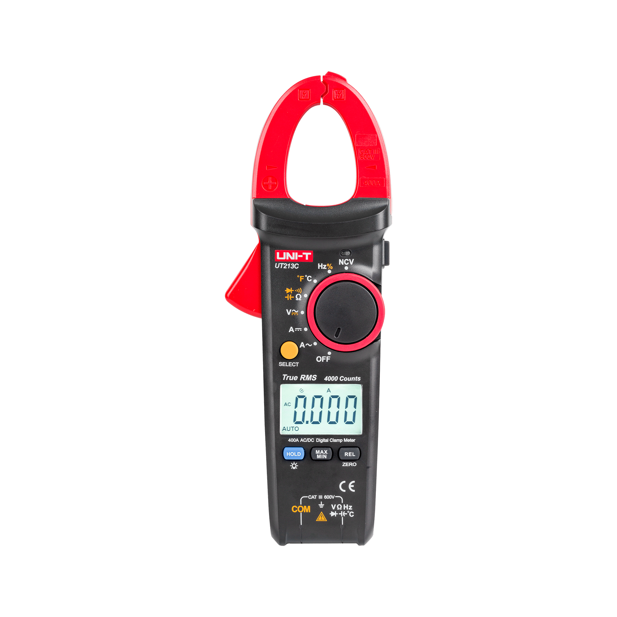 ZAKRESY POMIAROWENapięcie stałe DC: 400 mV / 4 V / 40 V / 400 V / 600 V ?(0,8%+1) Napięcie zmienne AC: 4 V / 40 V / 400 V / 600 V ?(1,2%+5)Natężenie prądu stałego DC: 40 A / 400 A ?(2%+3)Natężenie prądu zmiennego AC: 40 A / 400 A ?(1,8%+9)Rezystancja: 400 Ohm / 4 kOhm / 40 kOhm / 400 kOhm / 4 MOhm / 40 MOhm; ?(1%+2)Pojemność: 40 nF / 400 nF / 4 ?F / 40 ?F / 400 ?F / 4 mF / 40 mF ?(4%+5)Częstotliwość: 10 Hz ~ 1 MHz ?(0,1%+4)Temperatura: -40? ~ 1000? ?(1%+3); -40? ~ 1832? ?(1%+6)Test diod: ok. 1,5 VSprawdzanie ciągłości obwoduWspółczynnik wypełnieniaDODATKOWE FUNKCJEAutomatyczna zmiana zakresów pomiarowychFunkcja wykrywania pola elektrycznego (NCV)Zamrożenie ostatniego wskazaniaPomiar True RMSTryb pomiaru względnegoZapis wartości MAX/MINPodświetlany ekran LCDPodświetlenie miejsca pomiaruAutomatyczne wyłączanieWskaźnik niskiego poziomu baterii: =< 3,6 VMaksymalny odczyt: 4000CECHY OGÓLNEImpedancja wejściowa napięcia stałego: >= 10 MOhm Rozwarcie szczęk: 30 mmPróbkowanie: 3/sZasilanie: bateria 3x 1,5 V (R03)Rozmiar wyświetlacza: 38 x 24 mmWymiary: 220 x 75 x 40 mmWaga: 280 gAkcesoria: baterie, przewody pomiarowe, sonda pomiaru temperatury