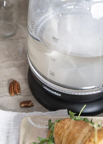 Duży, elektryczny czajnik rodzinny, o tradycyjnym kształcie dzbanka w nowoczesnej odsłonie. Pozwala sprawnie zagotować wodę na herbatę dla 6-7 osób dzięki mocy 2200W. Zaopatrzony w wyraźny wskaźnik poziomu wody, wyłączy się automatycznie po jej zagotowaniu. Blokada uniemożliwi również włączenie pustego czajnika, oszczędzając w ten sposób energię i dbając o bezpieczeństwo użytkownika. Dla wygody został zaopatrzony w obrotową podstawę, płaskie dno oraz grzałkę za stali szlachetnej i podświetlenie LED podczas gotowania. Pozwala zagotować na raz 1,7l wody.