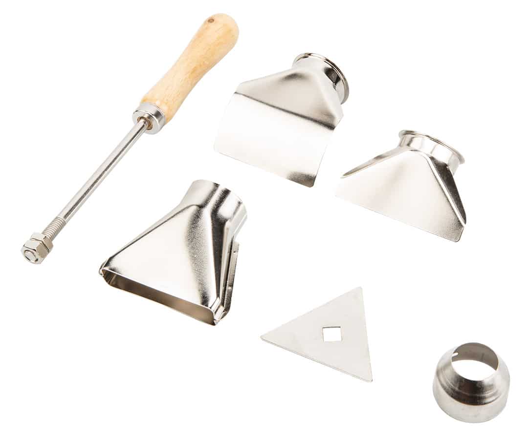 Opalarka 2000W, zakres temperatur: I: 50C, II: 70-600C, przepływ powietrza 300 – 500 l/min, (LxH) 250 x 190 mm, masa 0.77 kg, akcesoria: 4 dysze, skrobak z rączką, walizka