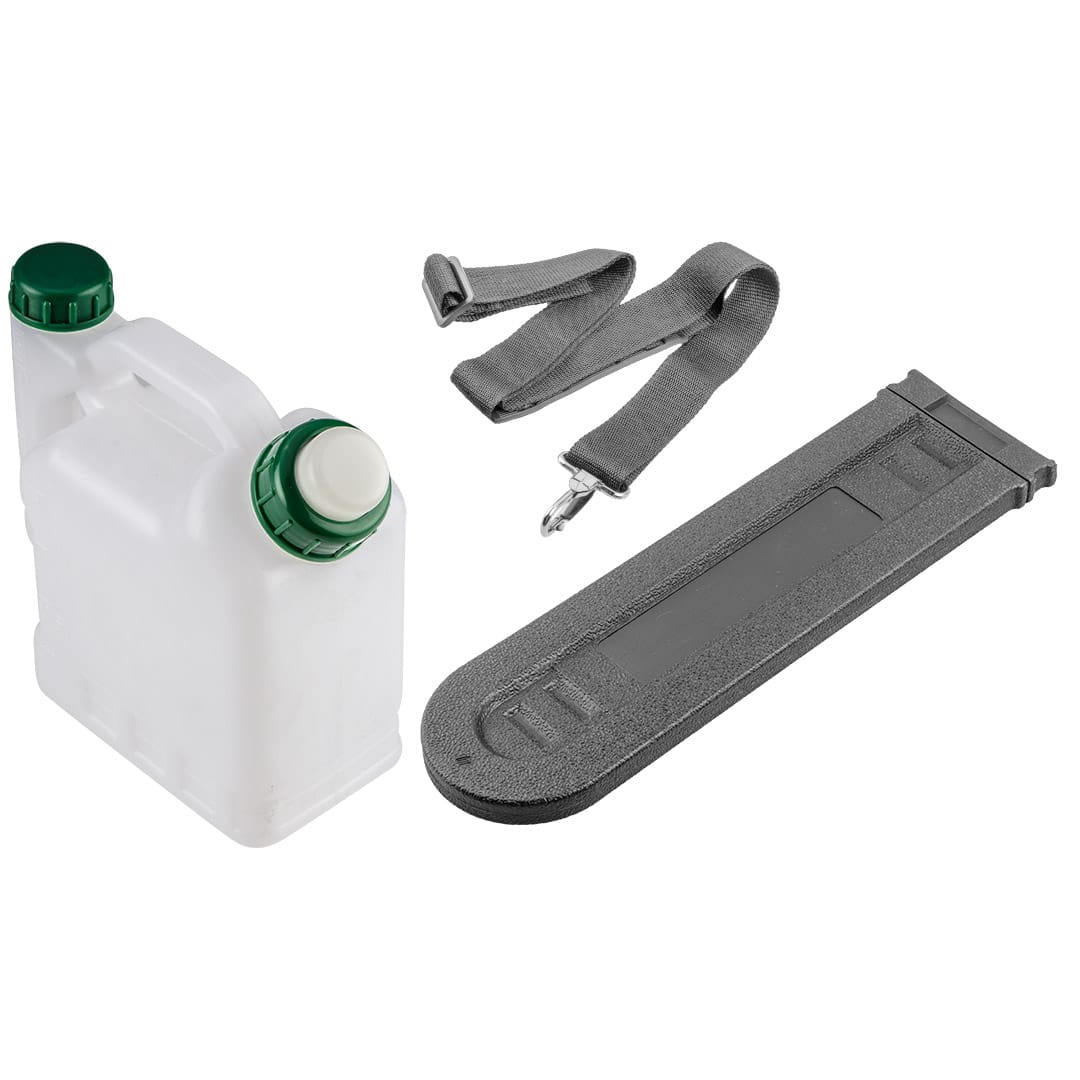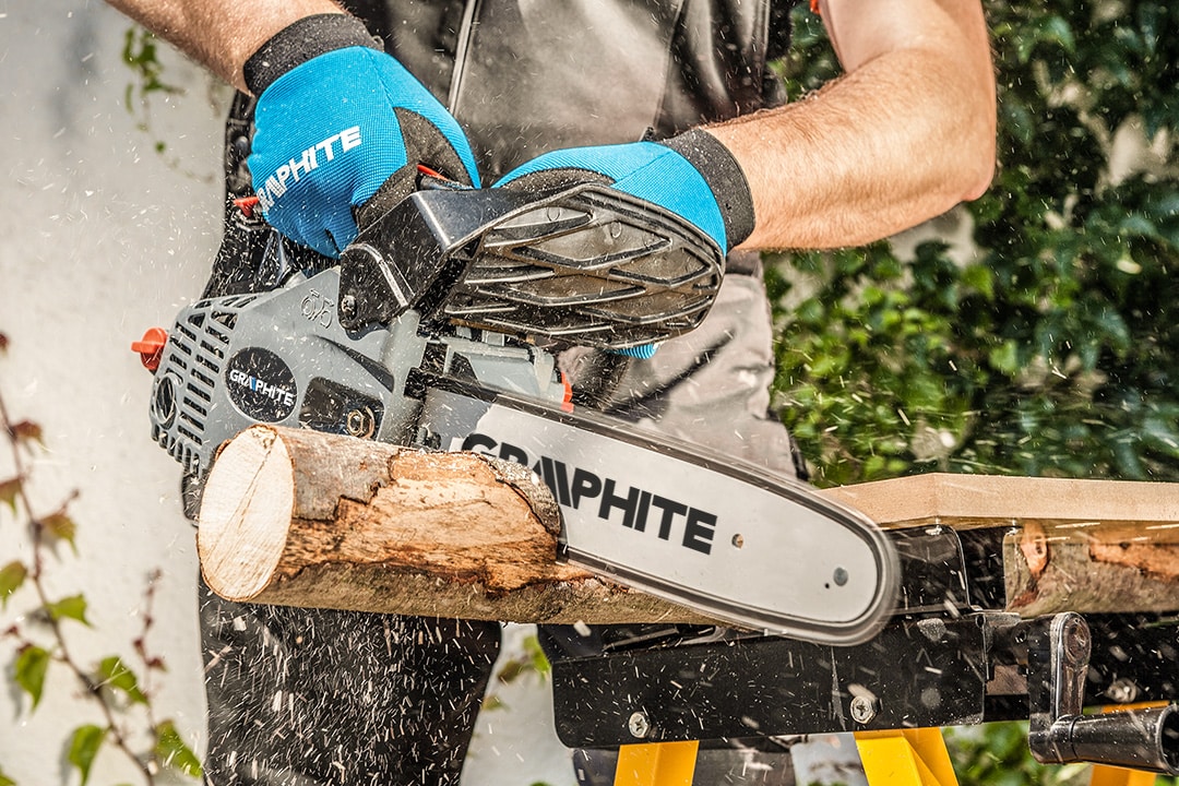 Pilarka łańcuchowa spalinowa 0.9kW (1.22KM), prowadnica GRAPHITE 12″ (300 mm), obroty 10500 min, zbiornik paliwa 230 ml, zbiornik oleju łańcuchowego 160 ml, podziałka łańcucha 3/8″ (9.525 mm), grubość łańcucha 0.05 (1.27 mm), automatyczna pompa olejowa z ręczną regulacją, silnik dwusuwowy, (LxWxH) 270 x 235 x 225 mm, masa (bez prowadnicy i łańcucha) 3.2 kg, akcesoria: osłona prowadnicy, prowadnica, łańcuch OREGON, klucz do świec, wkrętak do regulacji gaźnika, pilnik, pas naramienny, pojemnik na mieszankę benzynowo-olejową