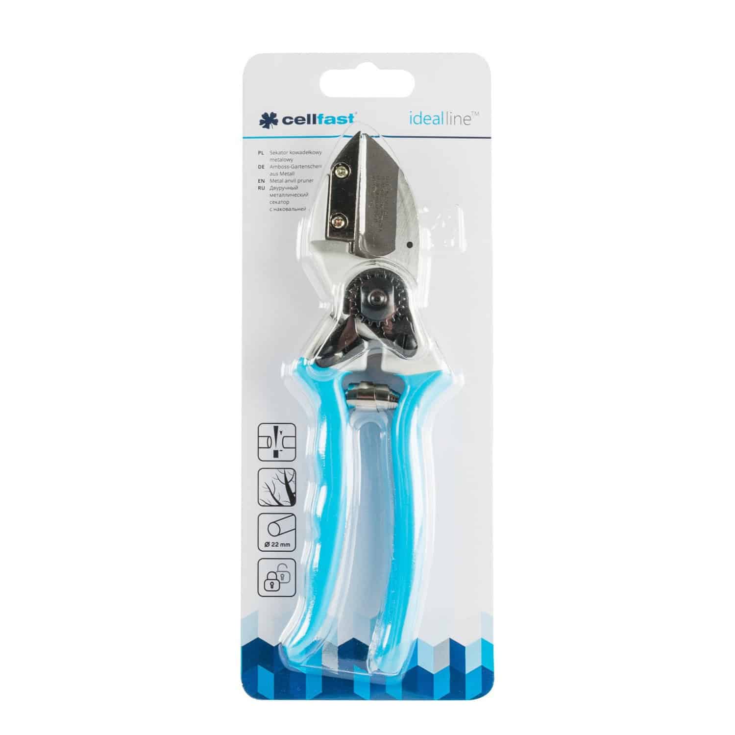 Uniwersalny, jednoręczny sekator kowadełkowy CELLFAST przeznaczony do cięcia suchych gałęzi i pędów.Wyprofilowany uchwyt powlekany winylem, gwarantuje pewny i wygodny chwyt.Maksymalna średnica cięcia to 22 mm.Specyfikacja- Producent: Cellfast- Linia: Ideal- Oznaczenie producenta: 40-418- Rodzaj: drewno suche, kowadełkowy- Materiał ostrza: stal wysokowęglowa, aluminium- Maksymalna średnica cięcia: 22 mmZestaw zawiera- Sekator kowadełkowy metalowy Cellfast IDEALCechy- Uniwersalny, jednoręczny sekator kowadełkowy- Przeznaczony do cięcia suchych gałęzi i pędów- Maksymalna średnica cięcia 22 mm- Twarde, chromowane ostrze wykonane ze stali wysokowęglowej i aluminium, dzięki czemu sekator wyróżnia się bardzo wysokim poziomem wytrzymałości i niebywałą ostrością- Wyprofilowany uchwyt powlekany winylem, gwarantuje pewny i wygodny chwyt