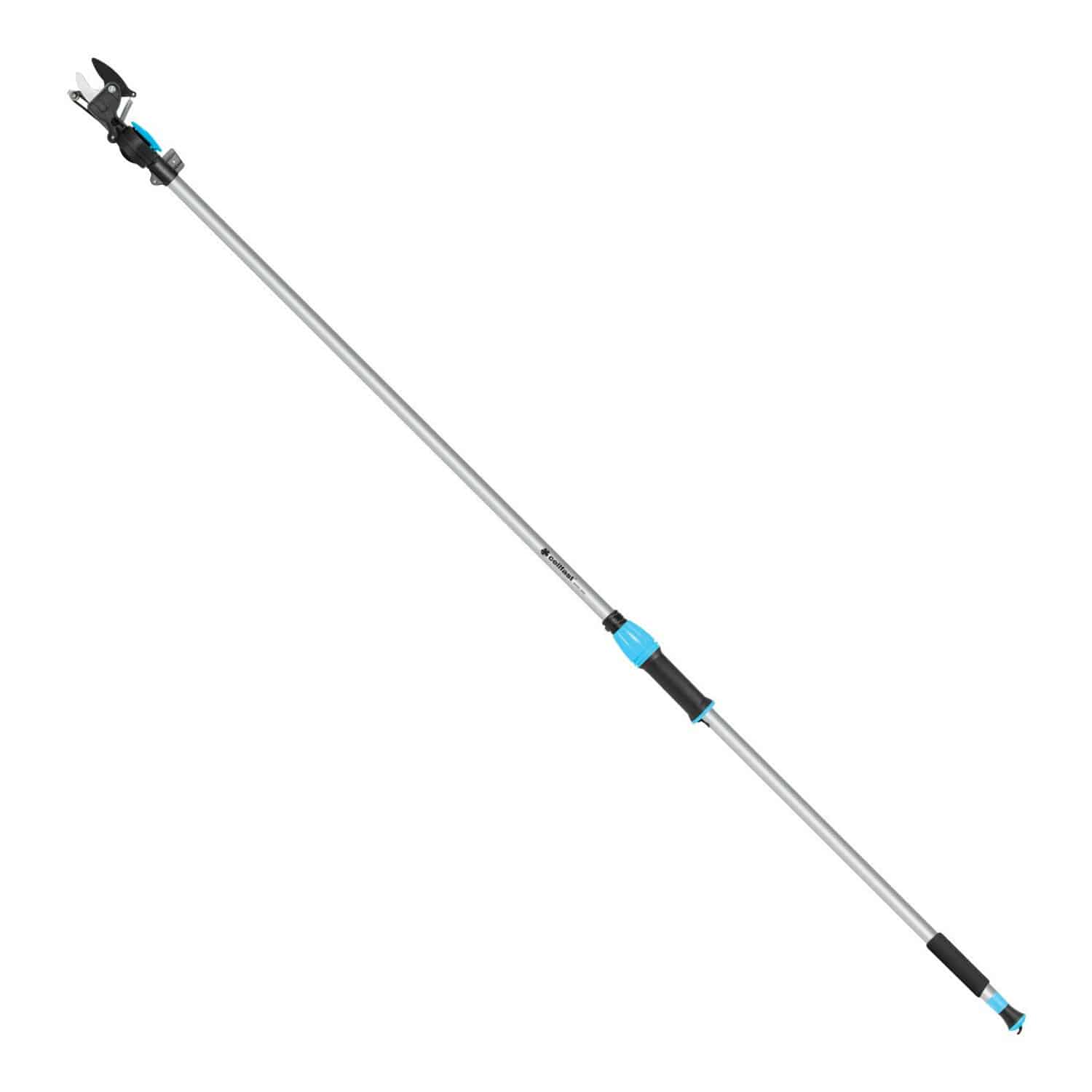 Wysokiej jakości sekator nożycowy z obrotową głowicą na wysięgniku idealnie nadaje się do cięcia gałęzi w miejscach trudno dostępnych.Konstrukcja sekatora pozwala na zamocowanie dołączonej piły, co daje możliwość obcinania gałęzi na dużych wysokościach.Specyfikacja- Producent: Cellfast- Linia: Ideal- Oznaczenie producenta: 40-416- Materiał: aluminium- Rodzaj: drewno suche, drewno mokre, nożycowy- Technologie: SAFETOUCH- Waga: 1,2 kg- Długość: 2000 mmZestaw zawiera- Sekator nożycowy z piłą na wysięgniku Cellfast IDEALCechy- Wyposażony w obrotową głowicę i skuteczny mechanizm tnący umieszczony wewnątrz urządzenia- Ostrze sekatora wykonane z wysokogatunkowej stali hartowanej- Antypoślizgowa rączka trzonka z wytrzymałego plastiku- Dodatkowa piła do cięcia gałęzi- Maksymalna średnica cięcia 25 mm- Długość: 2 m